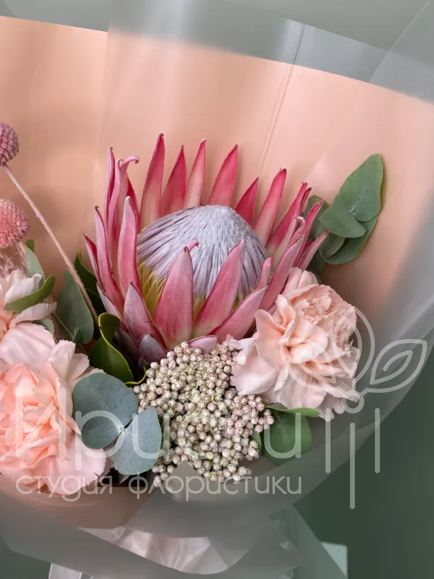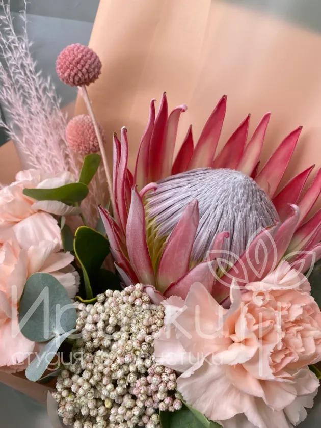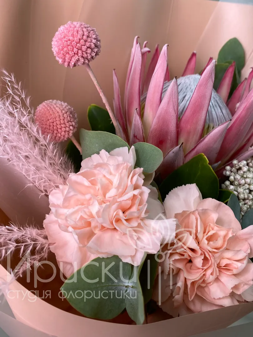 Букет с протеей и диантусами