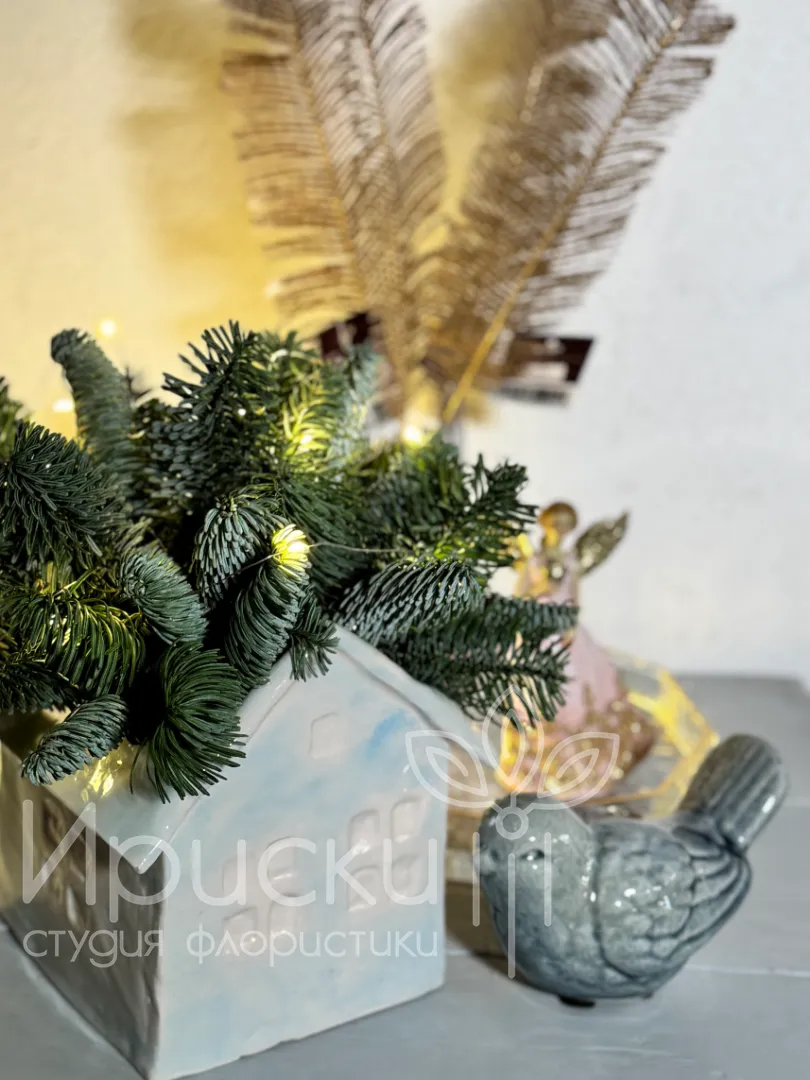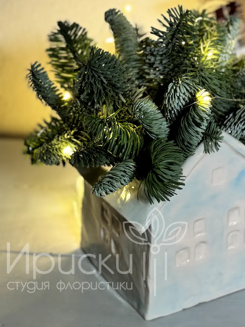 Композиция из свежих хвойных веточек датской пихты Нобилиса — пахнет так, будто дома уже стоит долгожданная ёлка.